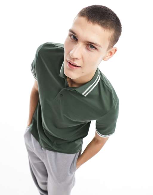ASOS DESIGN tipped pique polo shirt in khaki