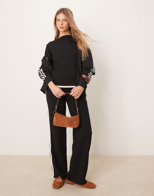 ASOS DESIGN tipped waffle co ord top and trouser co ord in black