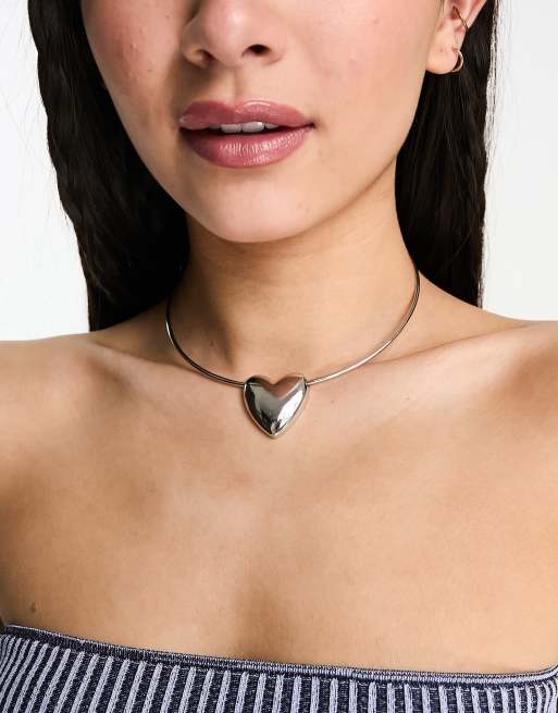 ASOS DESIGN torque choker necklace with puff heart design in silver tone