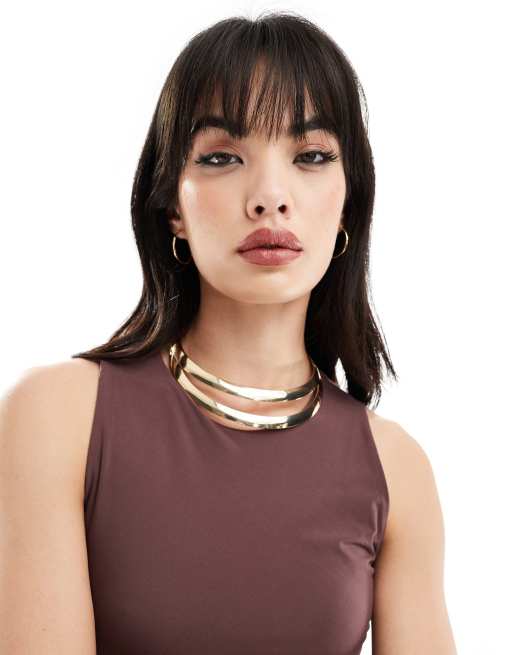 ASOS DESIGN torque choker with double row design in gold tone