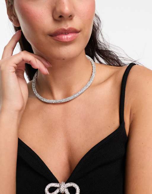 ASOS DESIGN torque necklace with all over crystal in silver tone