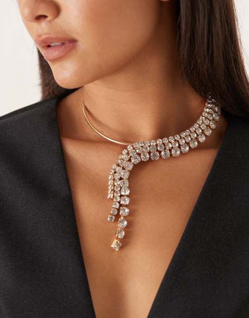 ASOS DESIGN torque necklace with sparkly diamante waterfall detail in gold tone