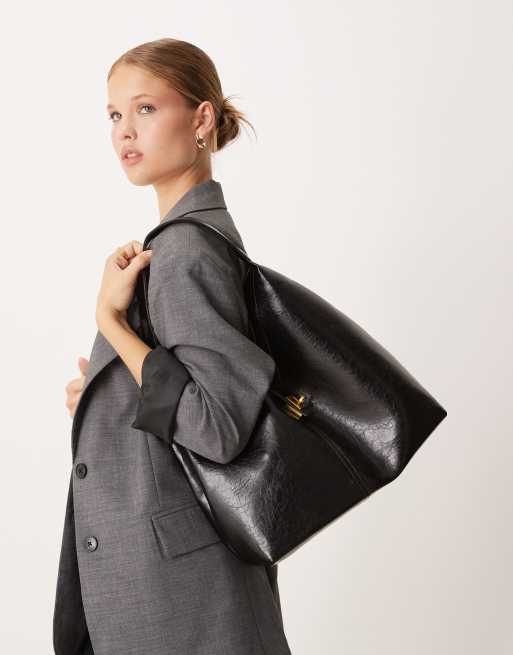 ASOS DESIGN tote bag with lock detail in black
