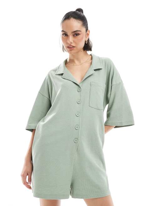 ASOS DESIGN towling t shirt romper in sage