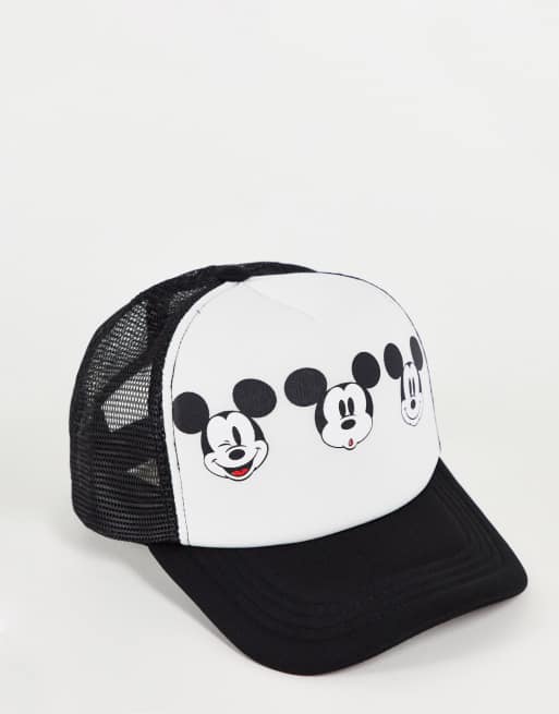 ASOS DESIGN trucker cap in monochrome with mickey mouse print
