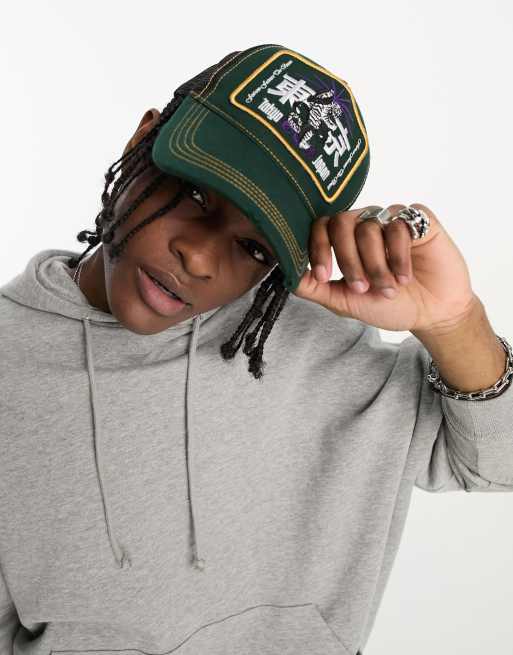 ASOS DESIGN trucker cap with Tokyo badge in green