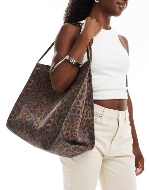 ASOS DESIGN tubular handle canvas tote bag in brown leopard
