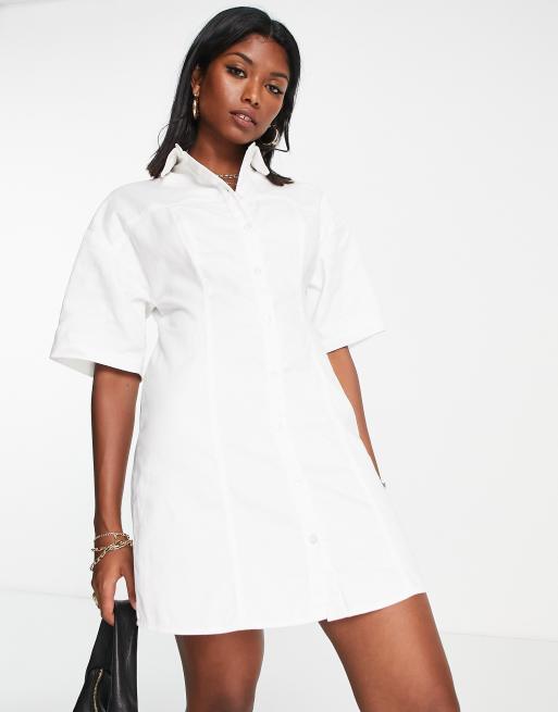 ASOS DESIGN twill mini shirt dress in white