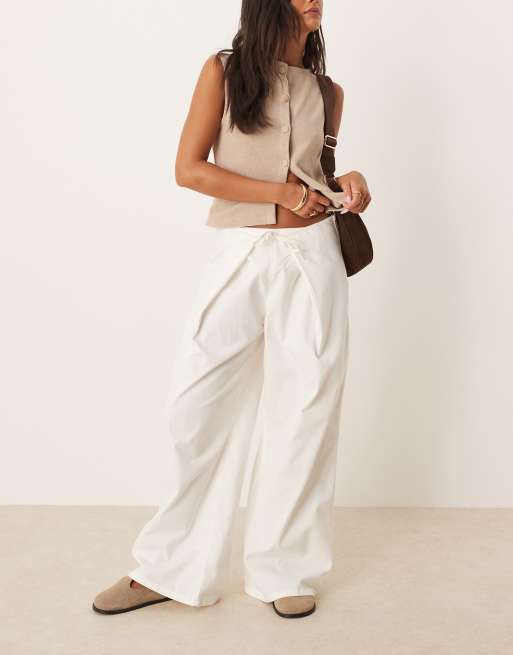 ASOS DESIGN twill trouser with fold over tie front in bone