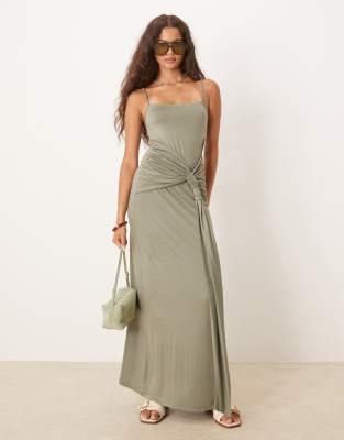ASOS DESIGN twist detail cami midi dress in khaki