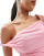 ASOS DESIGN twist one shoulder mesh midi dress in pale pink