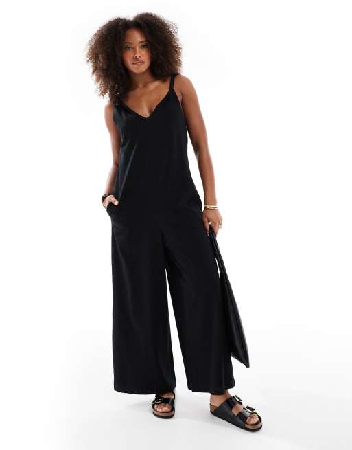 ASOS DESIGN Twist shoulder jumpsuit in black