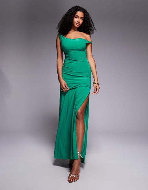 ASOS DESIGN twist shoulder with lace up back maxi dress in green