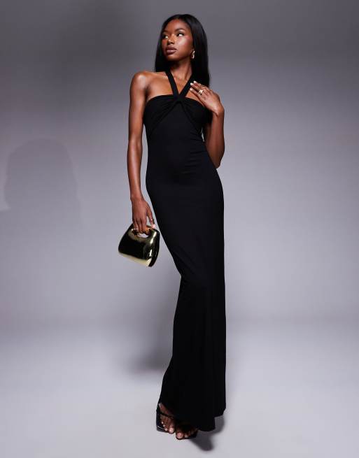 ASOS DESIGN twisted halter softline maxi dress in black