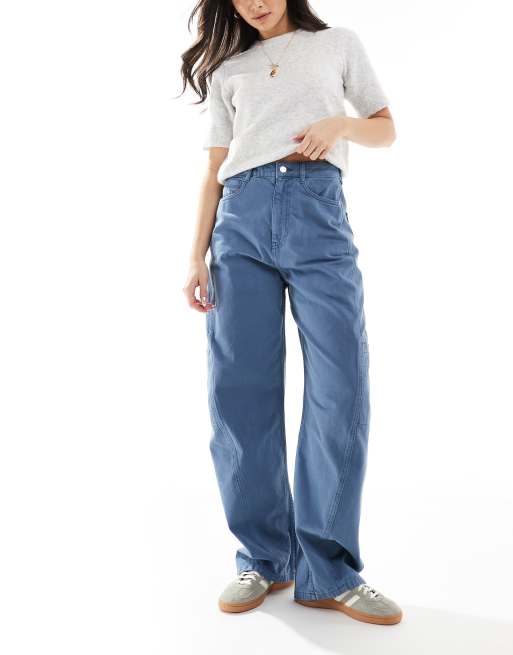 ASOS DESIGN twisted seam barrel leg jean in washed blue