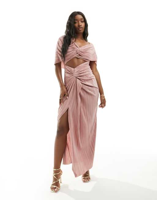 ASOS DESIGN two in one fallen shoulder plisse maxi dress in blush
