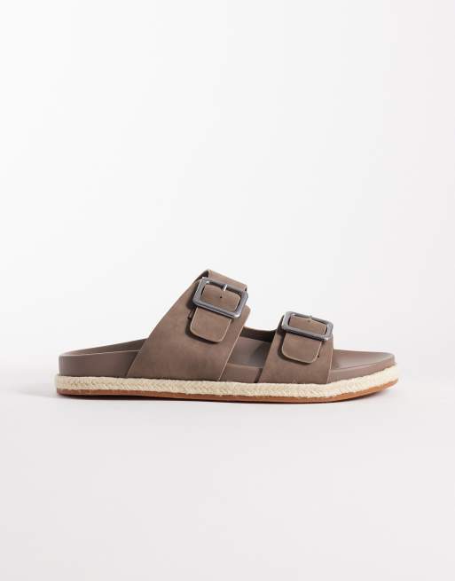 ASOS DESIGN two strap sandal with buckles in mole brown