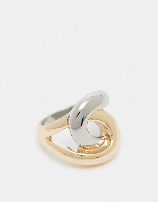 ASOS DESIGN two-tone ring with interlocking design in silver and gold tone
