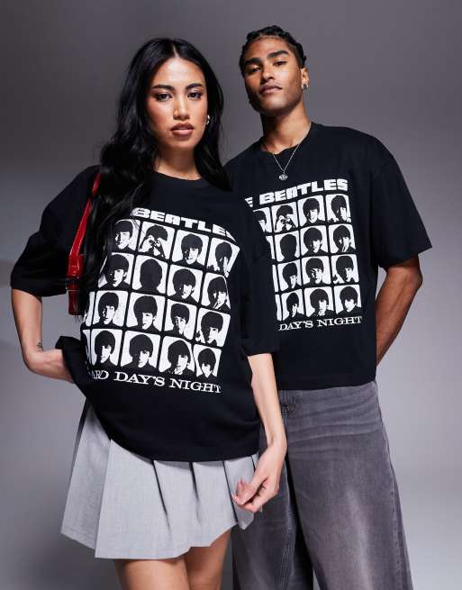 ASOS DESIGN unisex boxy oversized license t-shirt with The Beatles prints in black