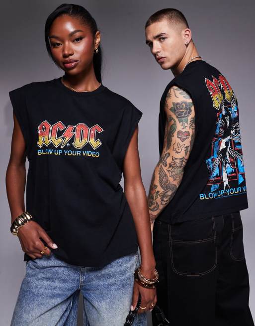 ASOS DESIGN unisex boxy oversized license vest with AC/DC prints in black