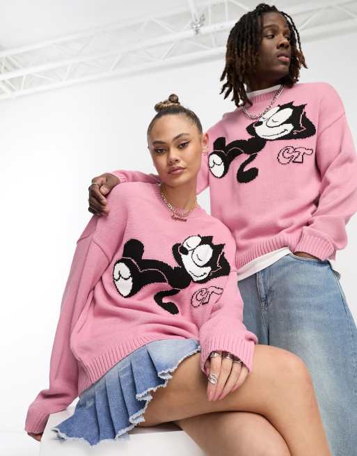 ASOS DESIGN unisex Crooked Tongues Felix The Cat oversized jumper in pink