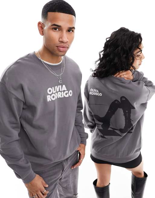 ASOS DESIGN unisex graphic sweatshirt with Olivia Rodrigo prints in charocal