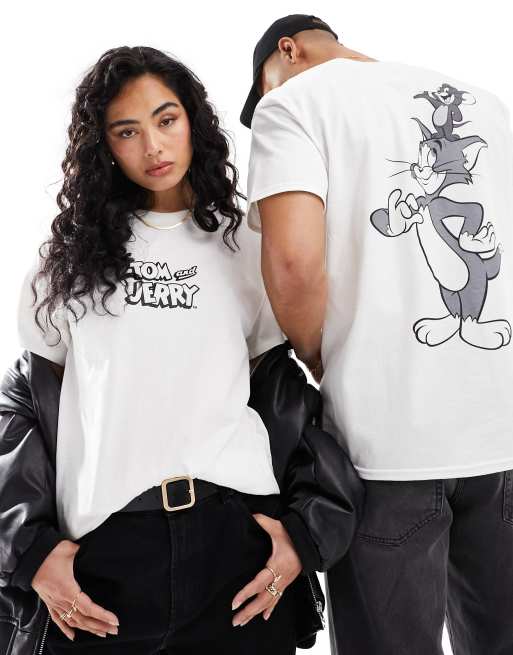 ASOS DESIGN unisex license graphic tee in white with Tom & Jerry prints