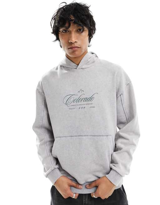 ASOS DESIGN unisex oversized hoodie with front city print in washed grey
