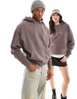 ASOS DESIGN unisex oversized hoodie with overdye wash in brown