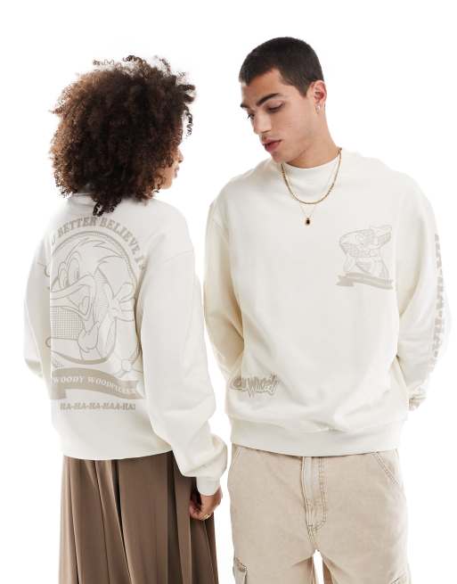 ASOS DESIGN unisex oversized license sweatshirt with Woody Woodpecker prints in ecru