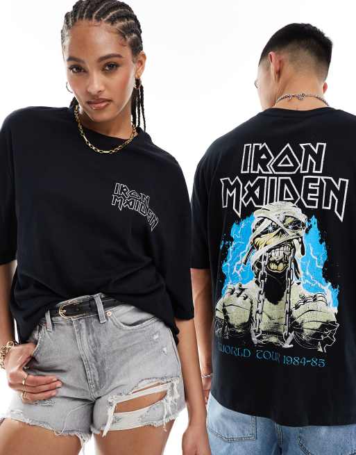 ASOS DESIGN unisex oversized license t-shirt in black with Iron Maiden graphic prints