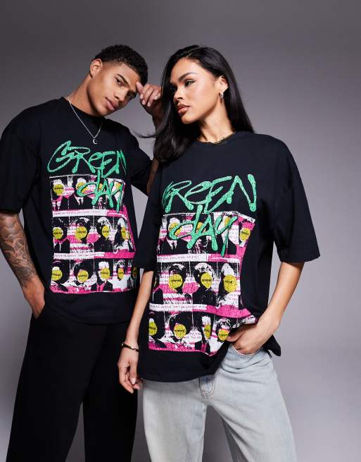 ASOS DESIGN unisex oversized license t-shirt with Green Day prints in black