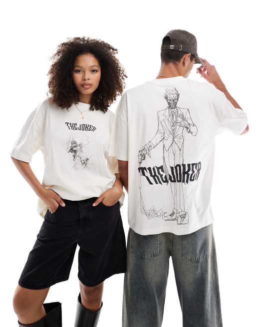 ASOS DESIGN unisex oversized license t-shirt with The Joker sketch prints in stone