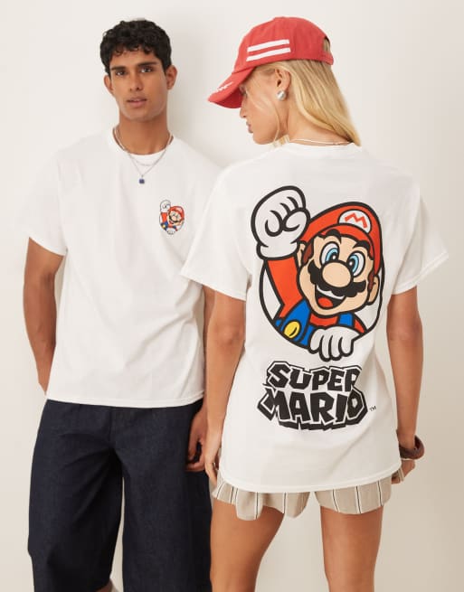 ASOS DESIGN unisex oversized t-shirt with Nintendo Super Mario prints in white