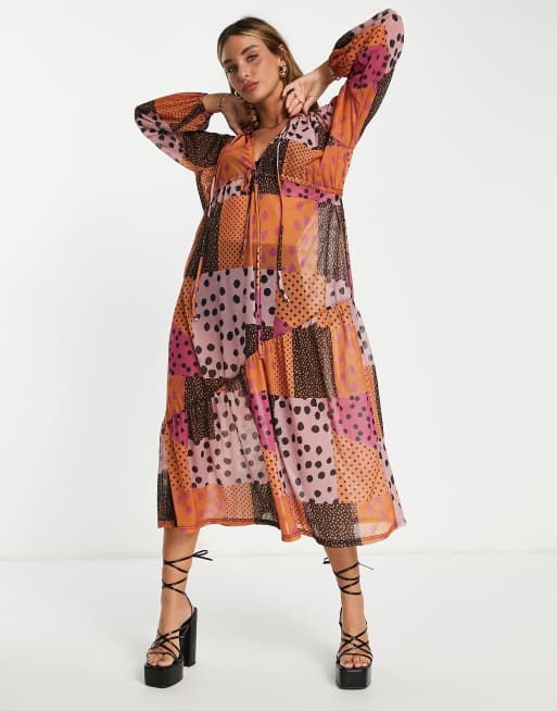 ASOS DESIGN v neck midi dress in mix match spot print