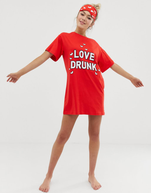 ASOS DESIGN Valentines love drunk sleep tee and eyemask