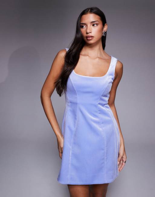 ASOS DESIGN velvet square neck seam detail mini dress in ice blue