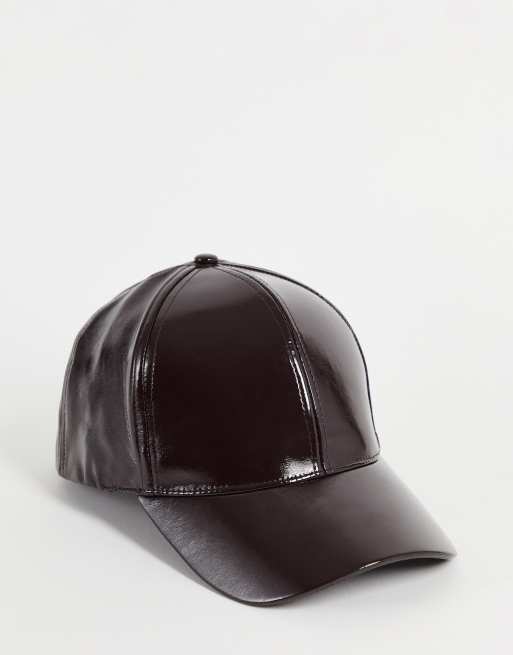 ASOS DESIGN vinyl baseball cap in dark brown