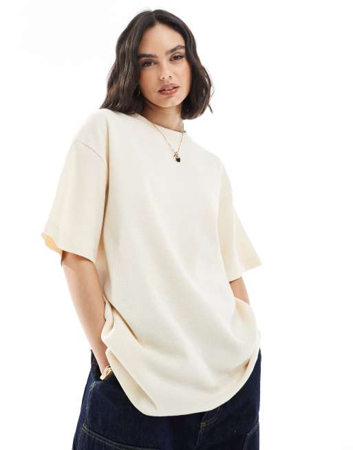 ASOS DESIGN waffle oversized t-shirt in washed cream