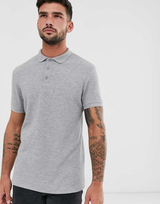ASOS DESIGN waffle polo in grey marl
