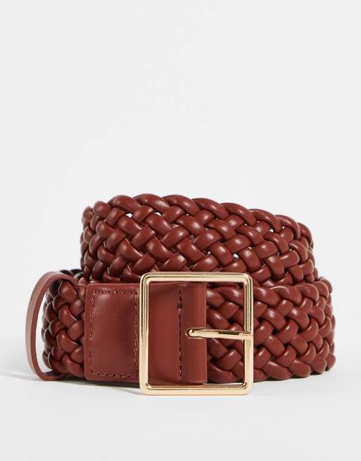 ASOS DESIGN waist and hip belt in 70s brown weave in brown