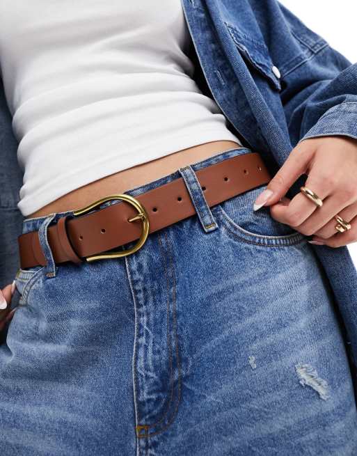 ASOS DESIGN waist and hip half moon jeans belt in tan