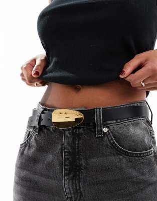 ASOS DESIGN waist and hip plate detail jeans belt in black