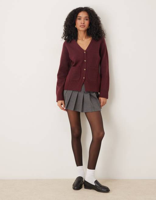 ASOS DESIGN waisted v neck cardigan with pocket detail in burgundy