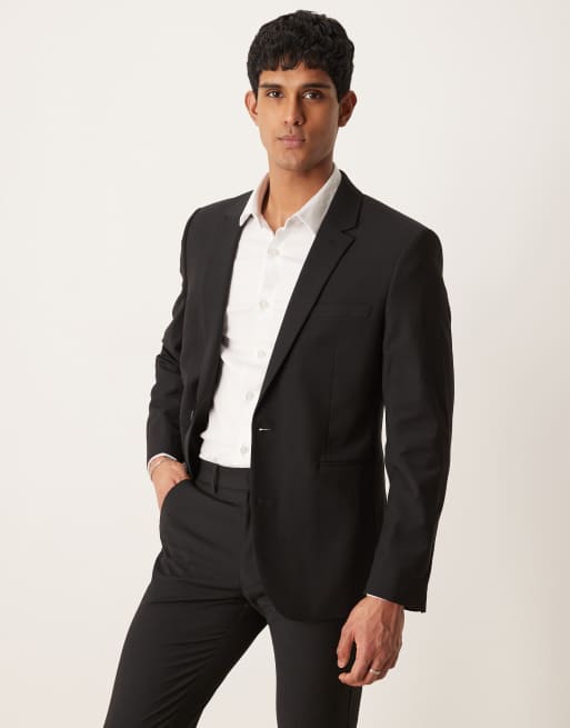 ASOS DESIGN washable slim suit jacket with lightweight worsted wool in black