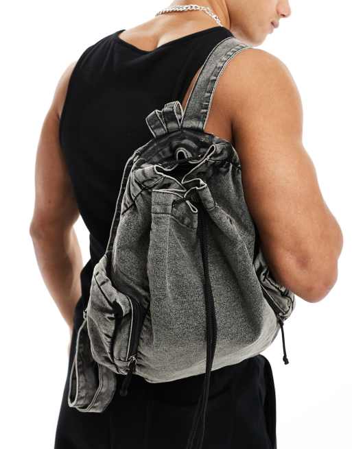 ASOS DESIGN washed canvas backpack in black