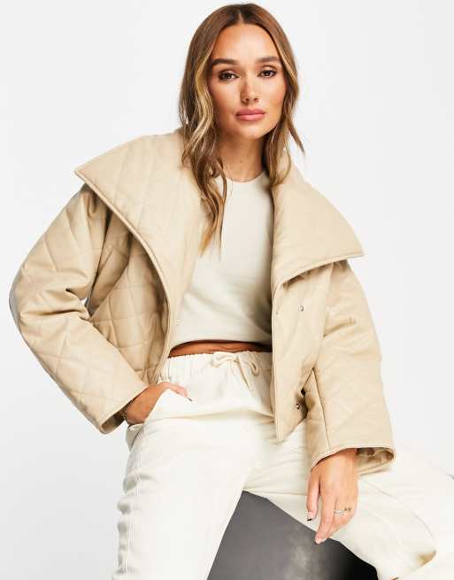 ASOS DESIGN waterfall quilted faux leather jacket in camel