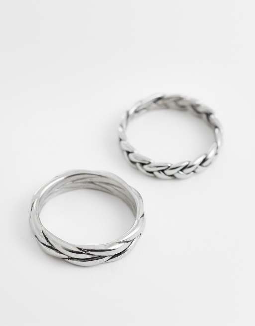 ASOS DESIGN waterproof stainless steel 2 pack braided rings in silver