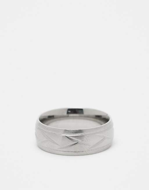 ASOS DESIGN waterproof stainless steel band ring with embossing in silver