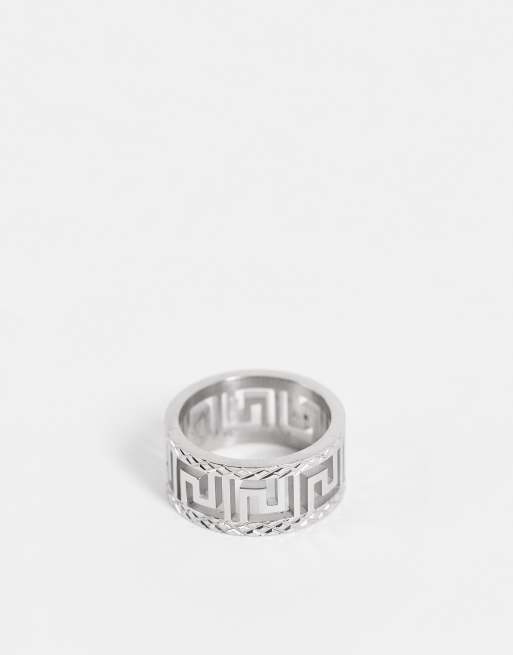 ASOS DESIGN waterproof stainless steel band ring with greek wave cut out design in silver tone